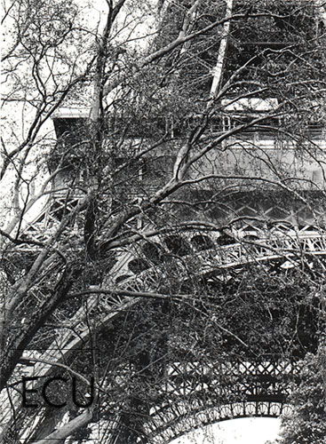 Black and white photo of the 19th century landmark Eiffel Tower in the Champs de Mars in Paris, France