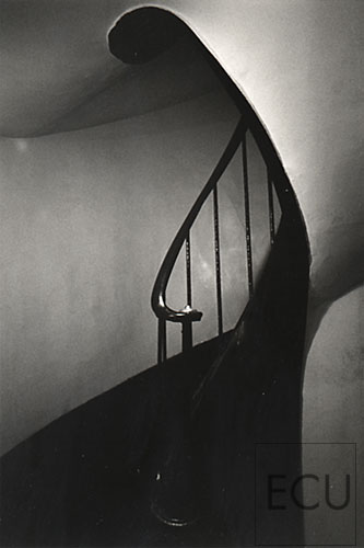 Black and white photo of a Parisian stair on rue Chanoinesse east of Notre Dame on Ile de la Cité in Paris, France